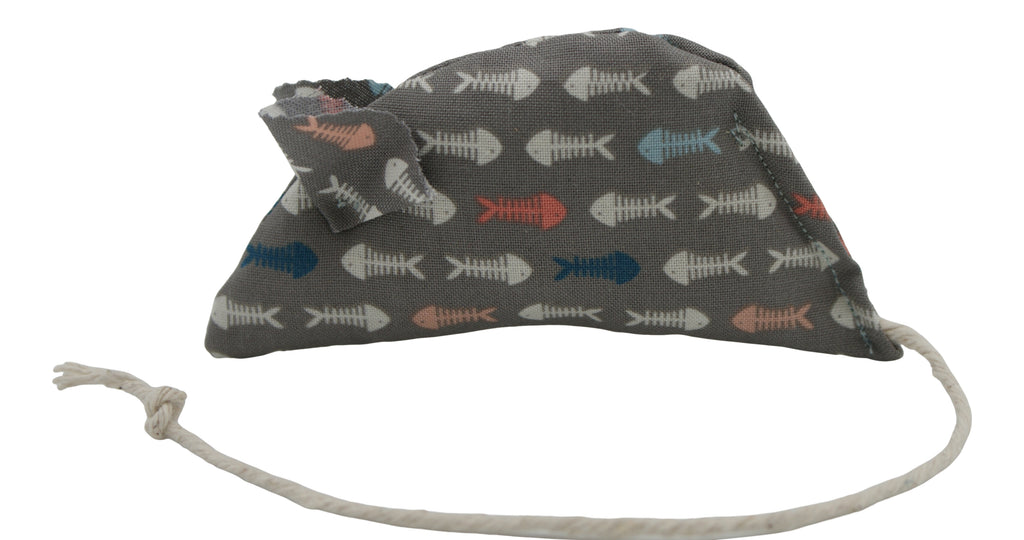 A fun Fishbones print! A pack contains 2 of our Fishbones catnip mice.